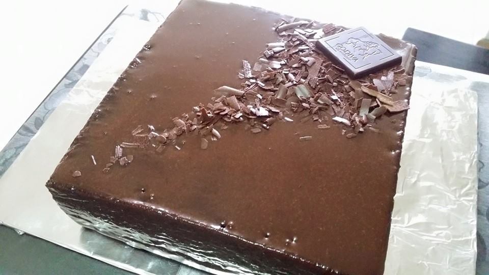 **please note that the cake will form a dome so I levelled it and flip it to the other side before glazing. Make it more presentable.