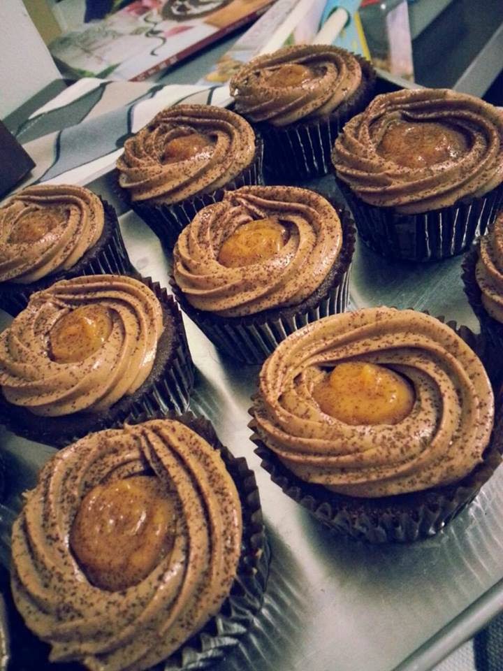 – Piped frosting around cupcakes & filled centre with Salted Caramel.